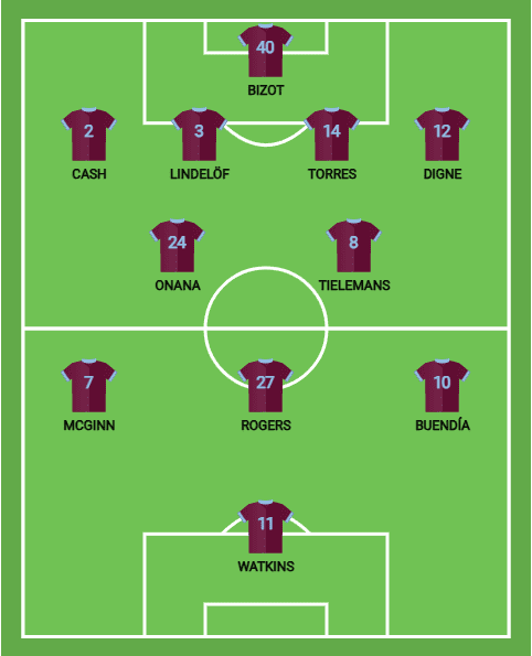 Aston Villa Formation 4-2-3-1
